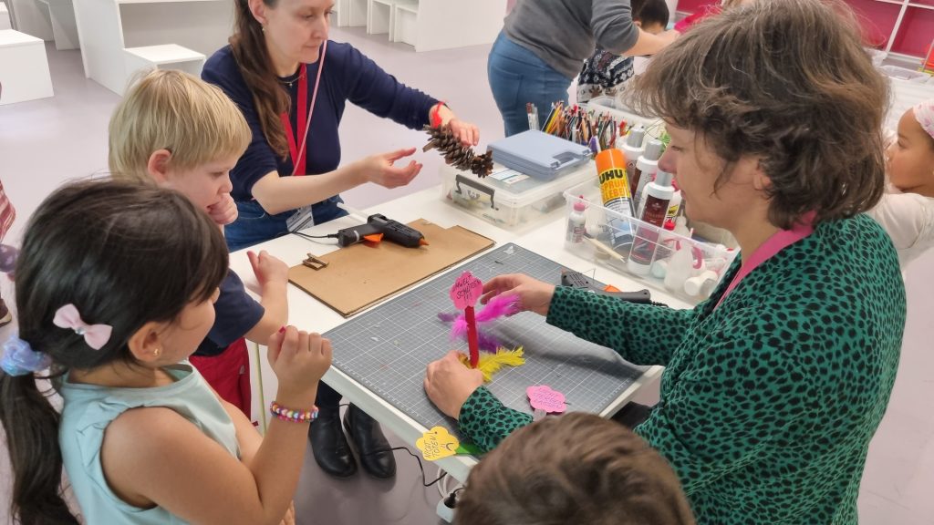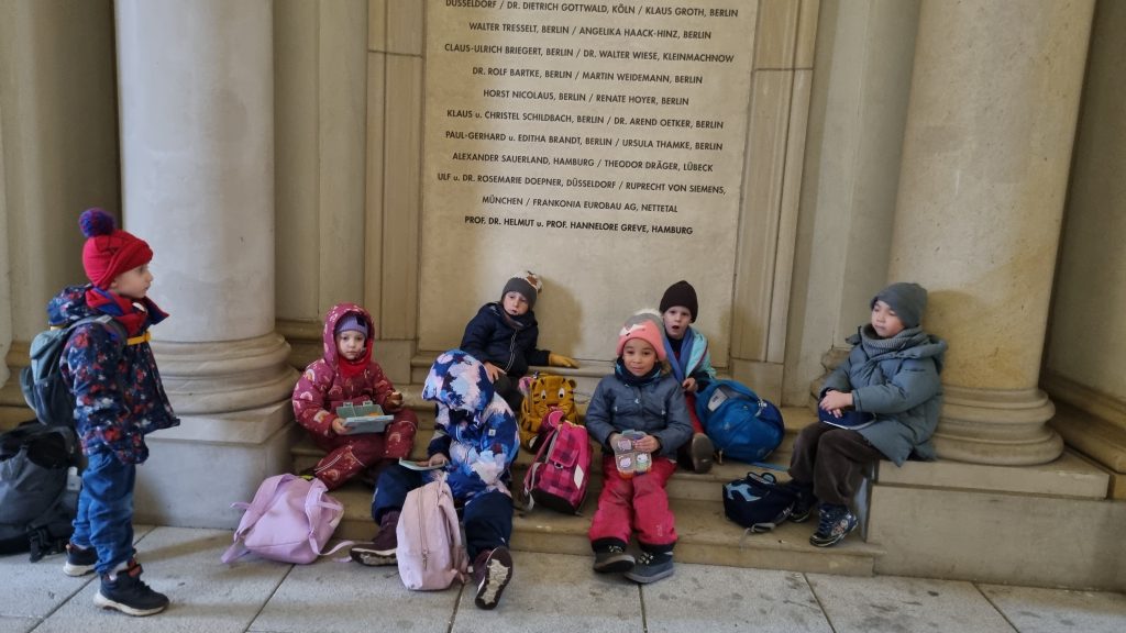 Eine unserer Grundsätze ist die partizipatorische Einbeziehung der Kinder in die tägliche Gestaltung der Angebote und Projekte. Über eines dieser durch die Kinder gewählten Projekte zum Thema „Wald“, ergaben sich für die Kinder nach einem Waldausflug Fragen zur dort gesehen Baumgesundheit. Also bogen wir in unserem Waldprojekt etwas ab und begannen uns nun intensiver genau mit dieser Frage zu beschäftigen. Schnell wurde klar, dass es um die Baumgesundheit nicht gut bestellt ist. Insbesondere die Stadtbäume ershcienen sorgniserregend. Die Kinder entwickelten in diesem Bereich ein immer stärker werdendes Interesse, woraufhin wir mit ihnen gemeinsam entschieden einen supersuperspannenden Ausflug in das Humboldt Forum zu starten. Das dortige Ziel war ein Workshop mit dem Titel: „Der Wald protestiert!“. Zugegeben ein durchaus höheres Niveau der Bildungsveranstaltung, das die Kinder aber genau so auch gewünscht hatten. Im dortigen Workshop beschäftigten wir uns mit der Forstwirtschaft, dem Klimawandel und der Wichtigkeit von Ökosystemen. Wofür brauchen die Menschen den Wald? Wie kann eine gesunde Waldnutzung aussehen? Wer profitiert von einem gesunden Wald? Die Kinder begannen im Rahmen dieses Workshops den (nicht immer sichtbaren) Bewohnern der Wälder eine Gestalt und eine Stimme zu verleihen. So rief die tausendjährige Zeder beispielsweise: „Lasst mcih stehen!“. Oder aber die Welle im Bach zischte: „Geht weg mit deinen Netzen!“. Ein wirklich überaus spannender und interessanter Ausflug. An dieser Stelle einen riesengroßen Respekt für dieses tiefe Bewusstsein der Kinder, ihr Interesse daran und vor allem auch dafür einer Veranstaltung gefolgt zu sein, bei der manche Größere so teils nicht problemfrei hinterher kommen. Genau deshalb gab es im Anschluss und zum Abschluss als kleines Goodie auch noch eine Runde im Karussell hinterher =)
