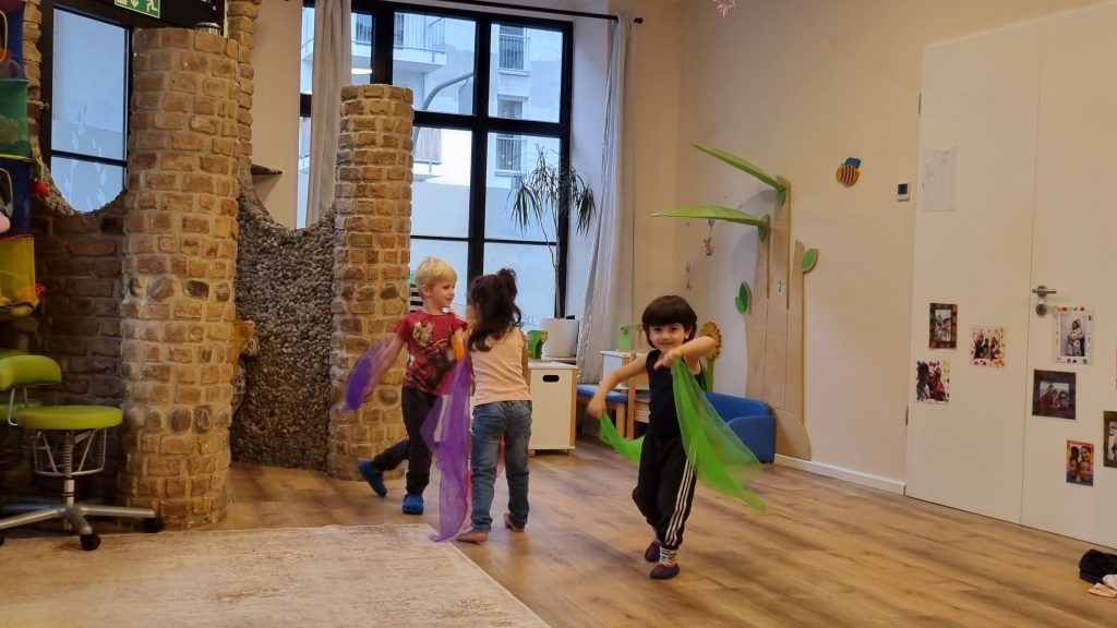 Im Kindertanz geht es darum, die natürliche Lust an Tanz und Bewegung zu fördern. Aber natürlich auch um Takt und Gefühl. Unsere „Großen Forscher“ tauchen hierbei spielerisch in die Welt des Tanzes ein. Den Schwerpunkt bilden Tanz und Improvisationsspiele, sowie das Erlernen elementarer Tanzbewegungen. Dadurch lernen die Kinder ihren Körper bewusst zu erleben. Sie entwickeln Spaß an der Bewegung und Freude am körperlichen Ausdruck. Dabei werden Muskeln gekräftigt und Haltung, Motorik, Fantasie, Musikalität und Rhythmik geschult.